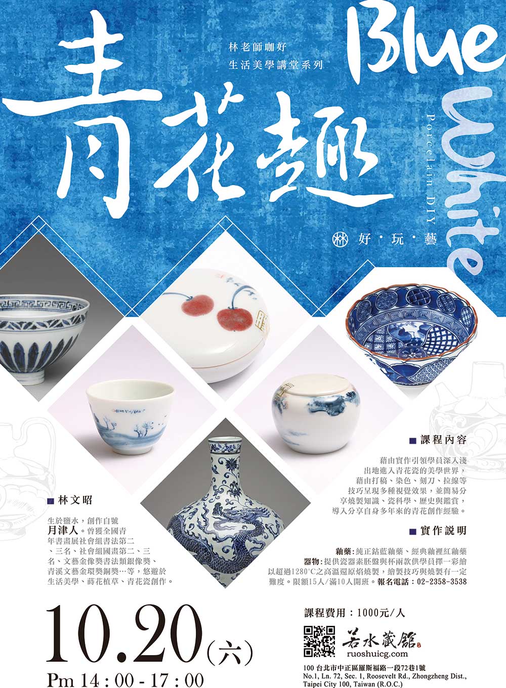 費用:1000元 / 人(含材料工具、瓷器素胚、燒製費用)